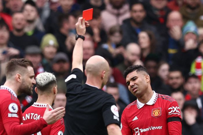 Soon after, came the big moment of the first half. Casemiro saw red for the second time this season, for a studs-up challenge on Southampton midfielder Carlos Alcaraz, which means he will miss United's next four domestic games.