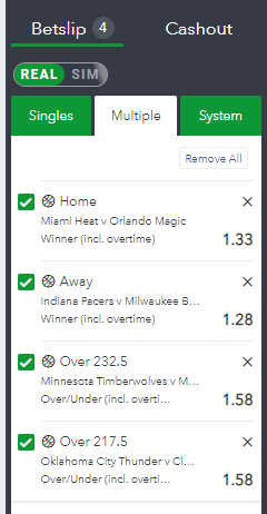 Odds accumulator and betting tips for NBA