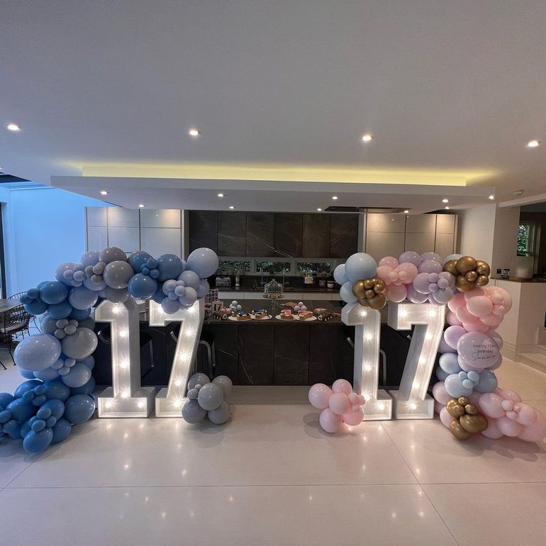 Their birthday decorations was also provided by Terry which included pink and blue balloons surrounding two light-up numbers 17.