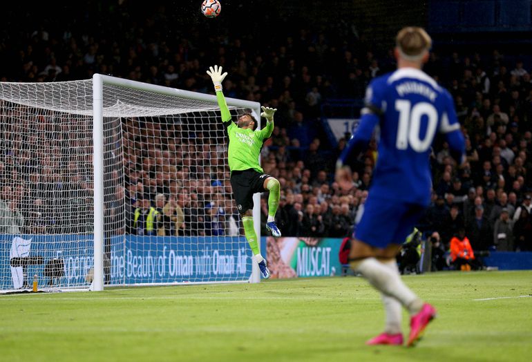 Mykhailo Mudryk scores for Chelsea after Raya's wrong positioning || Credit: Imago
