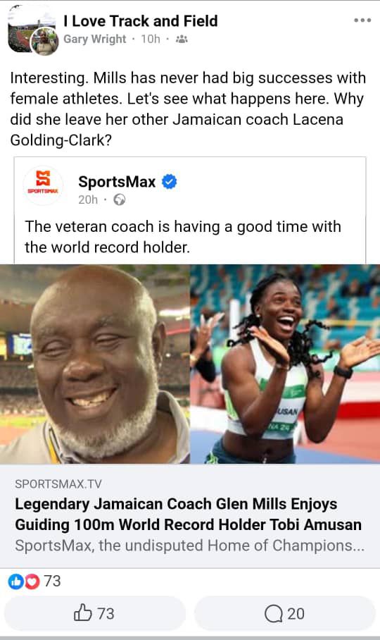 Coach Mills has now openly debunked such criticisms, stating Amusan has been making progress under his guidance since she joined in September and he has had previous success stories with female sprinters in the past.