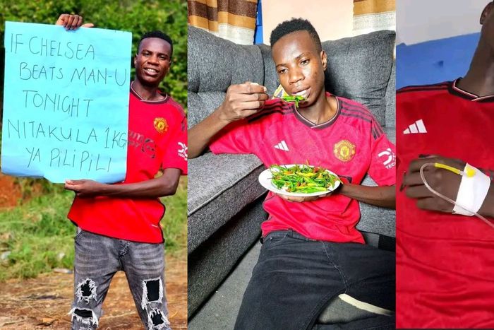 “If Chelsea beats Man-U tonight nitakula 1kg of pilipili (If Chelsea beats Man United tonight, I will eat 1kg of pepper),” read the message from a placard that he displayed online on Thursday.