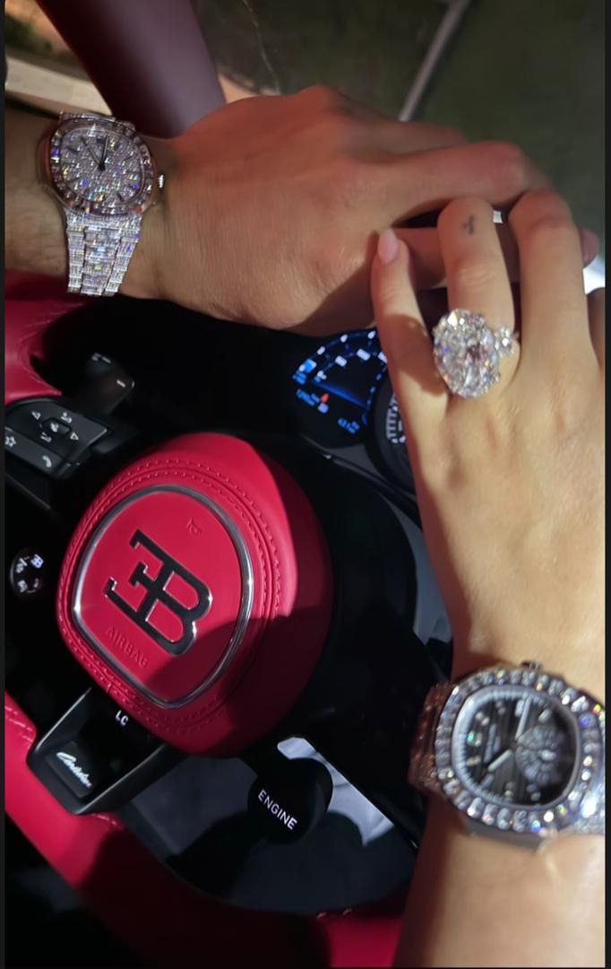 The Spanish model, long hailed as the undisputed queen of luxury among football WAGs, posted the captionless Instagram Stories image showing the couple’s wrists dripping in diamonds, all while relaxing in Ronaldo’s ultra-rare ₦15 billion ($11.7 million) Bugatti.