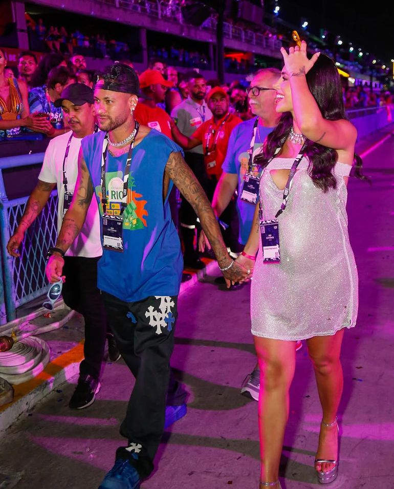 The glowing mum-to-be effortlessly combined elegance with Carnival flair, while Neymar kept things casual in a blue sleeveless tee crafted by the Carnival's organisers, adding a touch of luxury with a Jacob & Co. Bugatti Chiron Tourbillon watch worth a staggering $365,000.