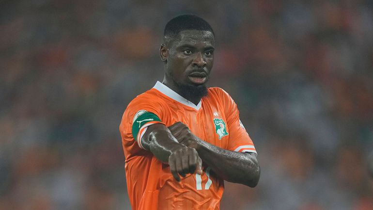 Serge Aurier looks on during 2023 African Cup of Nations final game against Nigeria