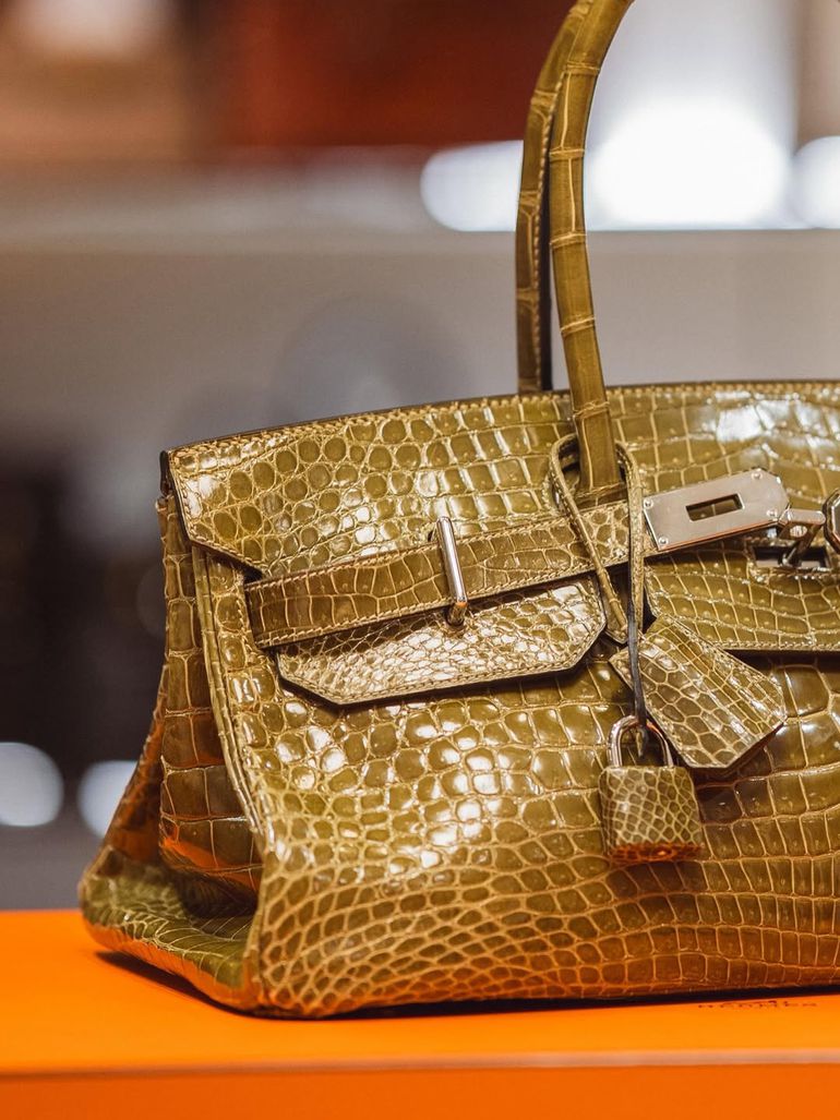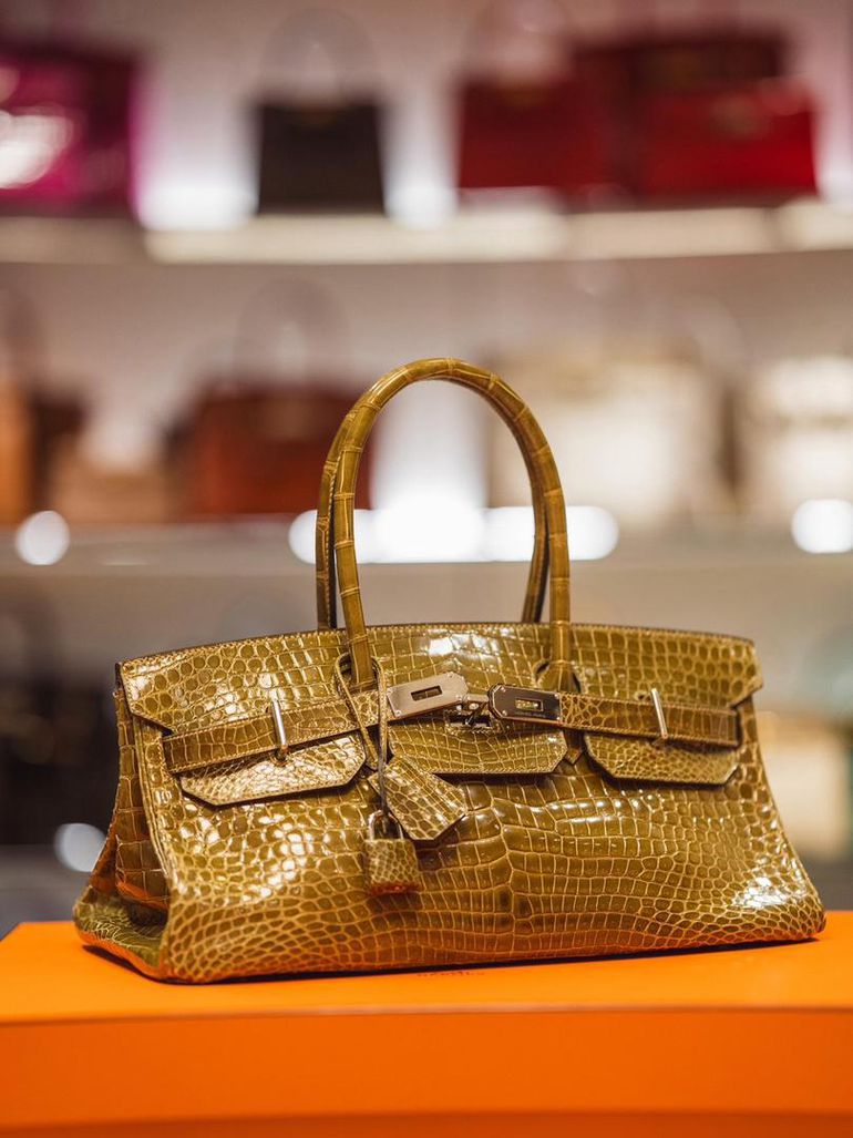 Georgina puts rare exotic crocodile Hermès Birkin on display