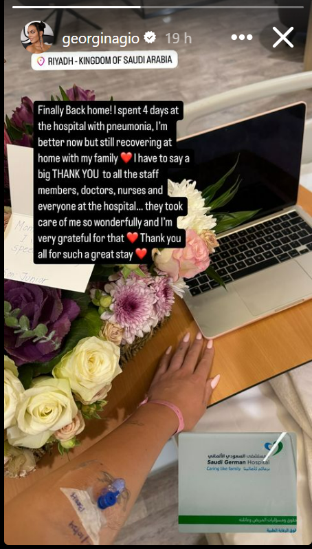 Georgina Rodriguez, the partner of football superstar Cristiano Ronaldo, has shared a heartfelt update with her fans after recently spending four days hospitalized with pneumonia.
