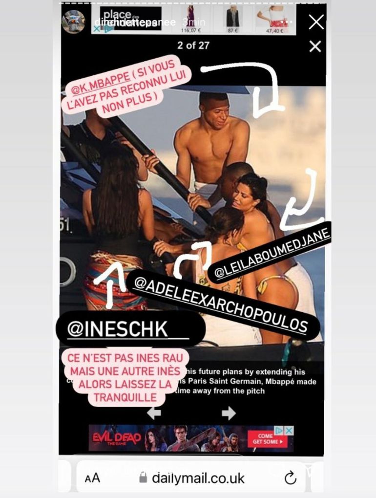 Mbappé, known for his intensely private life, offered no comment, nor did the model claimed to be in the photo - Ines Rau.