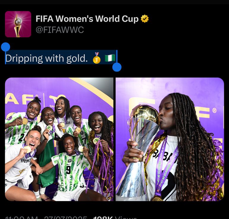 “Dripping with gold. 🥇🇳🇬,” the world football governing body wrote on X (formerly twitter)