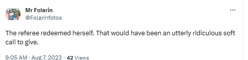After the review, the referee from Honduras rescinded her decision, with Nigeria getting a foul.