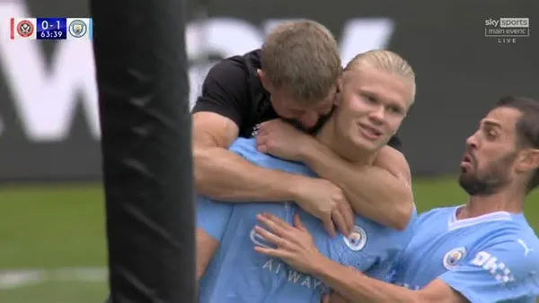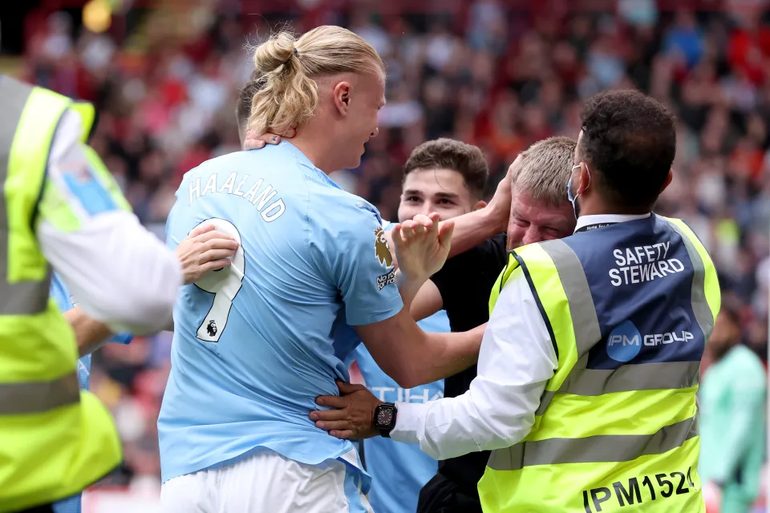 Erling Haaland: Former boxing world champion invades pitch to kiss Man City striker
