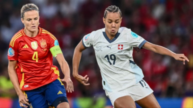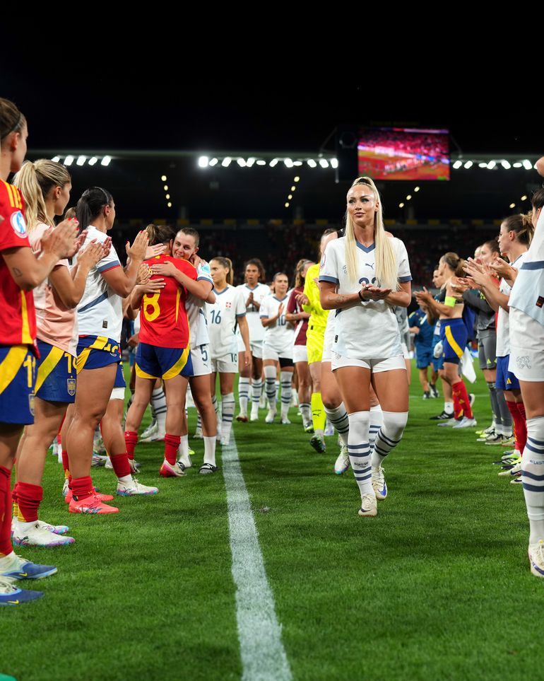 Switzerland finished the match a player down after Ana-Maria Crnogorčević received a straight red card in stoppage time for a reckless challenge on Selma Paralluelo.