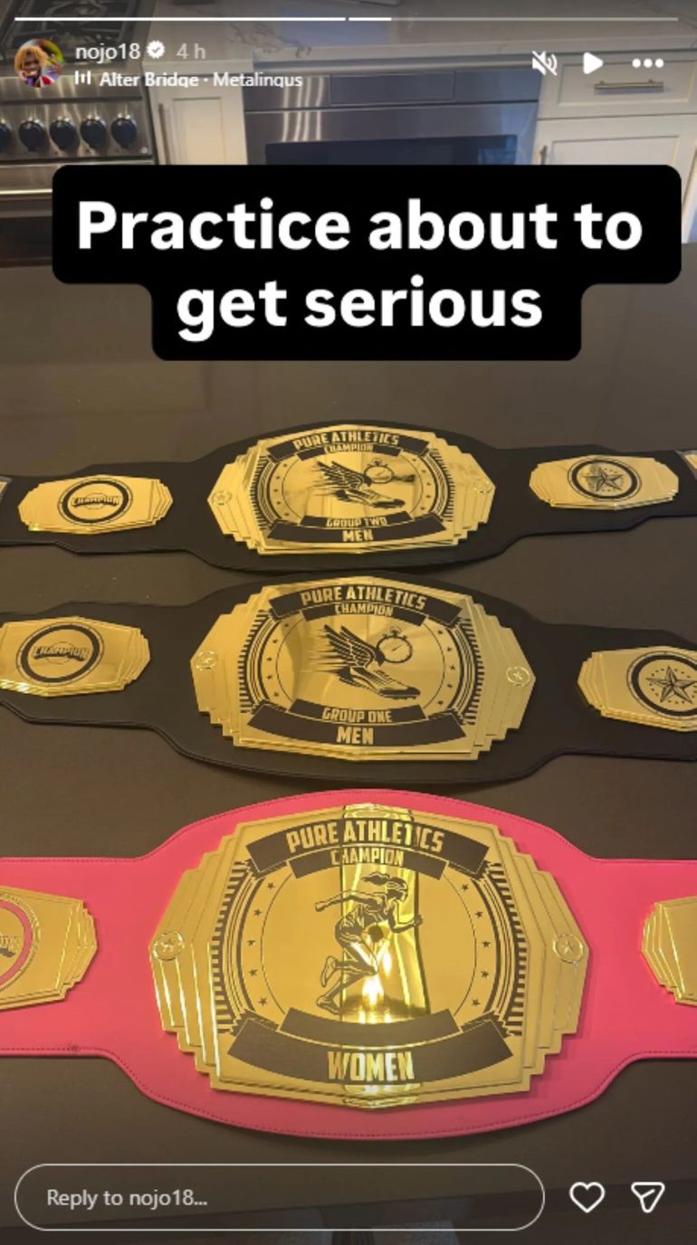 In a subsequent Instagram story, Lyles posted a picture of championship belts from his training group, Pure Athletics, indicating they would serve as a key motivator. "Practice about to get serious," he added.