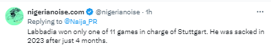 Social media was a buzz with the appointment of Labbadia with mixed reactions from Nigerian football fans.