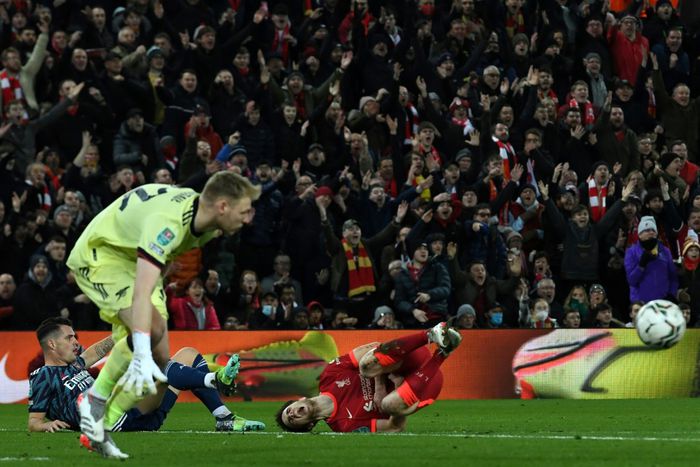 Moments later a rare Arsenal foray forward nearly resulted in the winner as Kieran Tierney picked out Bukayo Saka, but he could not beat Alisson Becker from close range.