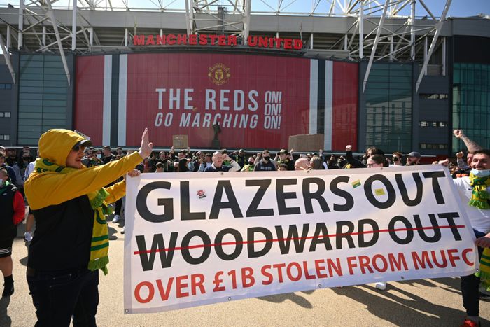 Despite not being in action until Sunday away to Leeds, Manchester United fans also gathered outside Old Trafford on Saturday to take aim at the Glazer family, who own the Red Devils.