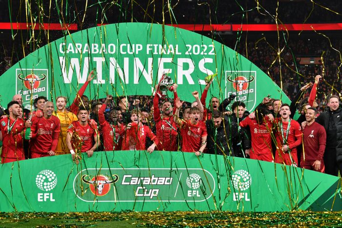 The Reds beat Chelsea 11-10 in a dramatic penalty shootout at Wembley on Sunday to win the first piece of domestic silverware on offer in the English season and are still chasing glory on three other fronts.