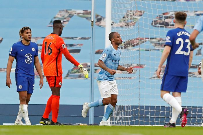 Gabriel Jesus shrugged off Andreas Christensen to break into the area. He squared, looking for Sergio Aguero. The Argentine's touch was poor but Sterling was on hand to tuck home.