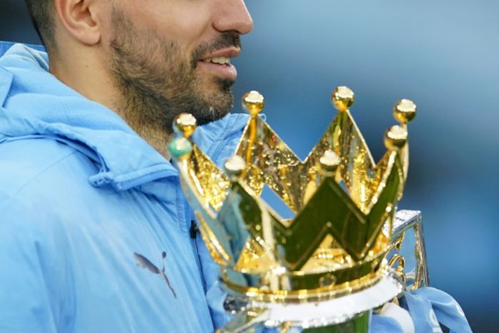 City paraded the Premier League trophy around the stadium before Aguero was reintroduced for a final farewell and fans were shown a montage of his goals as he watched with the trophy in his hands.