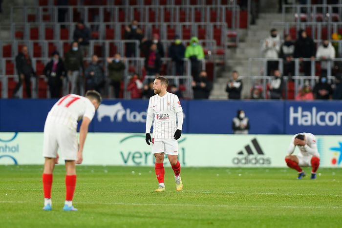 Sevilla were given a golden opportunity in injury-time to snatch victory at El Sadar but Ivan Rakitic missed a penalty, his shot well saved by the diving Sergio Herrera.