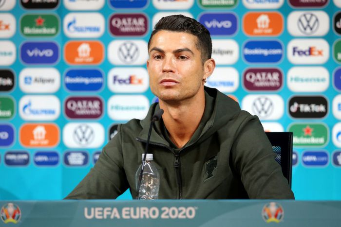 The 36-year-old Portugal captain is a fitness fanatic and made clear what he thought of the Coca-Cola bottle set out in front of him as he spoke to the media on Monday before his country's opening match against Hungary.