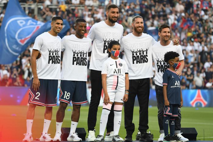 Messi joined fellow recruits Sergio Ramos, Gianluigi Donnarumma, Georginio Wijnaldum and Achraf Hakimi on a stage set up on the turf at the Parc des Princes, with the flashy presentation ceremony threatening to overshadow the match itself.