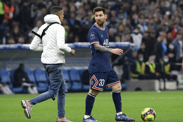 There was another interruption in the second half when one young man invaded the pitch and approached Messi before being escorted off by a legion of security staff.