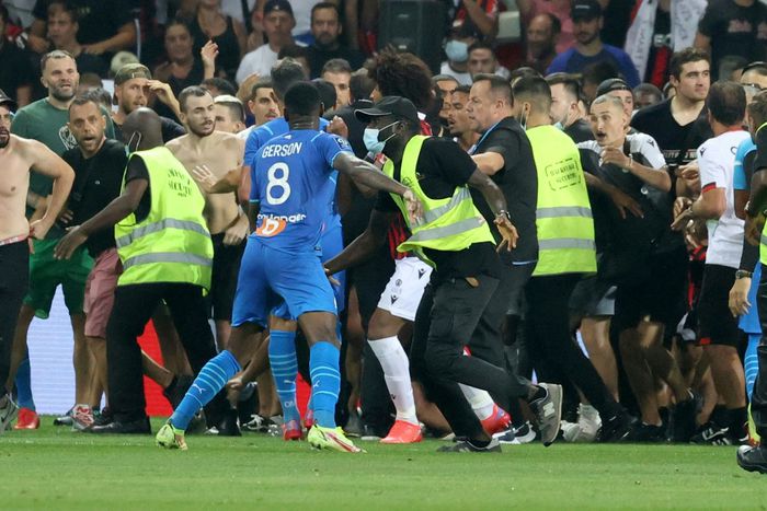 On Sunday evening, home supporters invaded the pitch and confronted the visitors' Dimitri Payet, who had thrown back a bottle lobbed at him by the crowd.