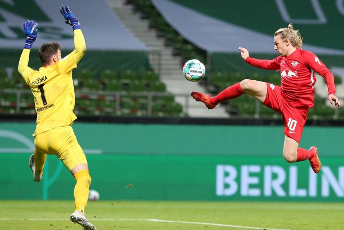 Werder goalkeeper Jiri Pavlenka pulled off a superb save to deny Leipzig striker Alexander Sorloth with four minutes gone.