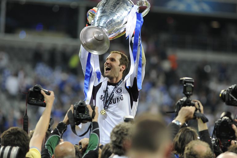 Petr Cech celebrating Chelsea's Champions League triumph in 2012 (IMAGO)