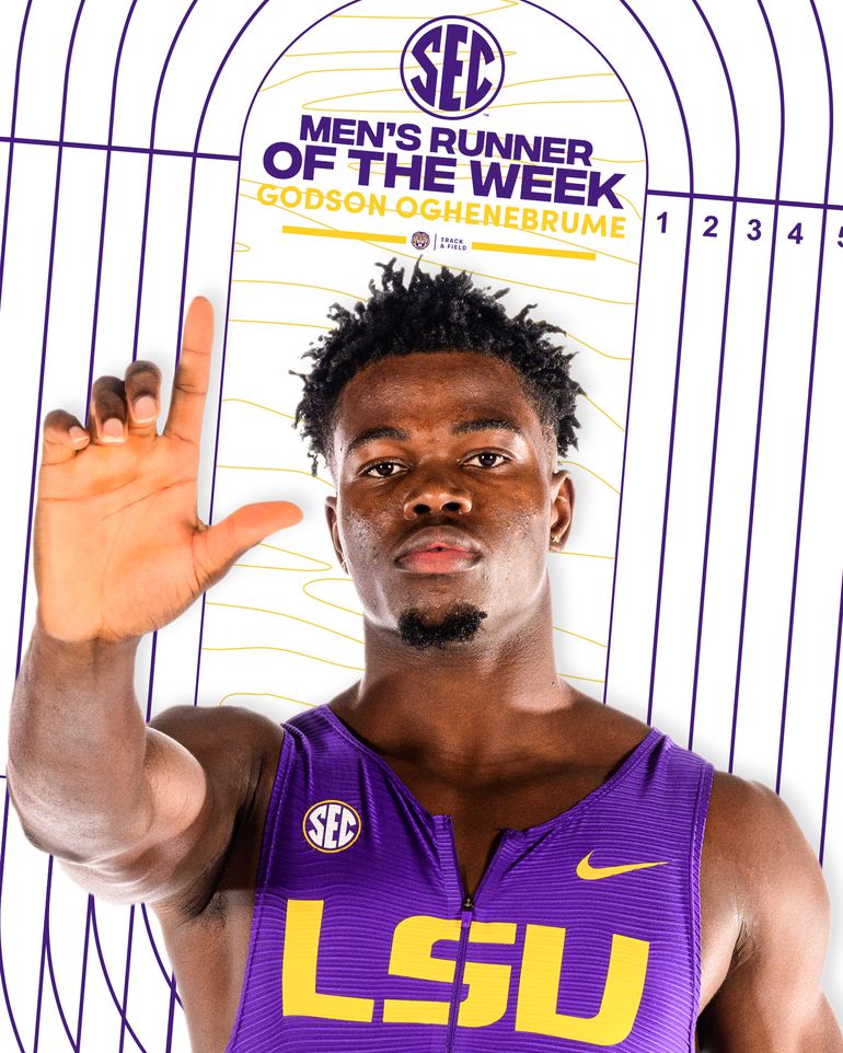 For the second consecutive week, Godson Brume has won the SEC Runner of the Week honour. The award is given to the best male runner in the South Eastern Conference in the outgoing week, which serves as motivation for the winning athlete.