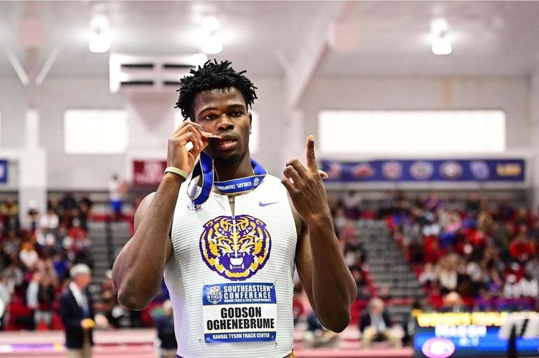 Godson Oghenebrume put on for Nigeria and LSU and here he is post-race! 👇#GeauxTigers | 📺 SEC Network+ pic.twitter.com/erwiqvkmUz