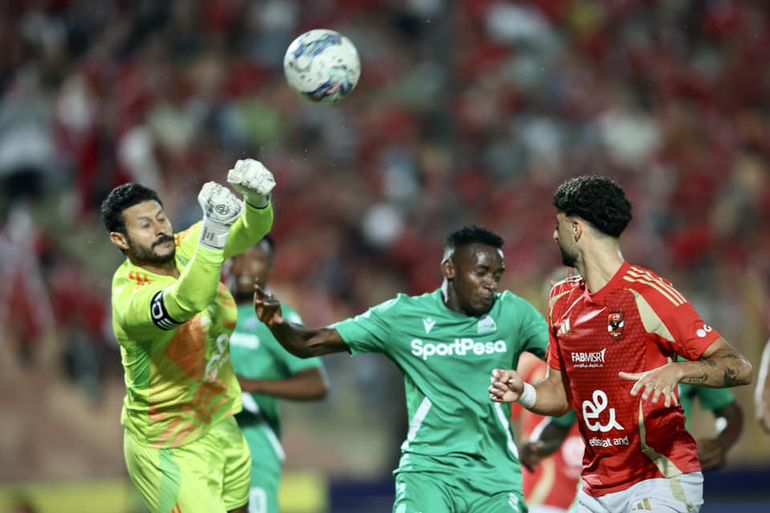 K'Ogalo keeper Gad Mathews was then called into action, rushing to clear the ball away from Al Ahly forward Wessam Abou Ali, who was a constant threat.