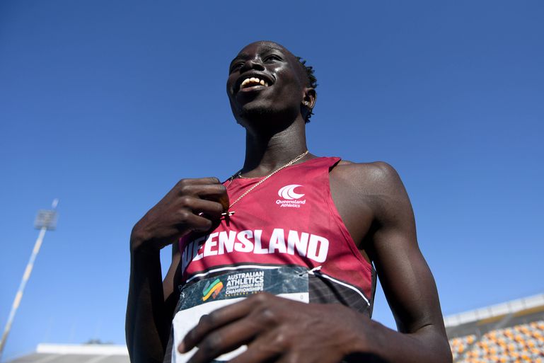 The 18-year-old South Sudanese-Australian sprint sensation successfully defended his Australian U20 100m title on Saturday at the Queensland Sport and Athletics Centre in Brisbane, clocking 10.21 seconds (+0.5m/s) in a performance that was as much spectacle as it was sport.