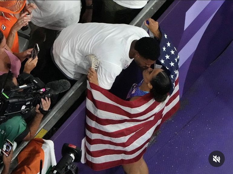 The couple were at the 2024 Paris Olympics, where she successfully defended her 400mH title in a new World and Olympic Record of 50.37s - her sixth time breaking the WR in her career.