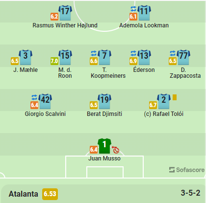 Atalanta's starting lineup in the 2-0 defeat to AC Milan (Via Sofascore)