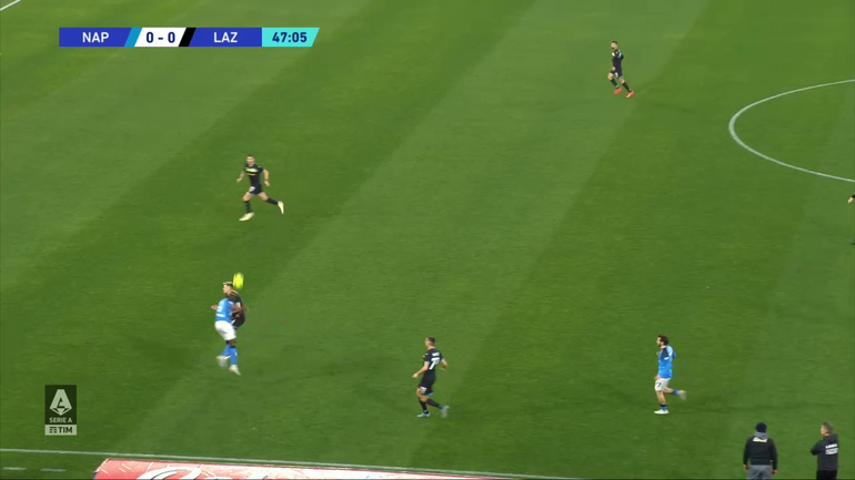 By the time the Napoli captain received the pass, however, the entire Lazio defence had pushed up as one, catching the striker offside.