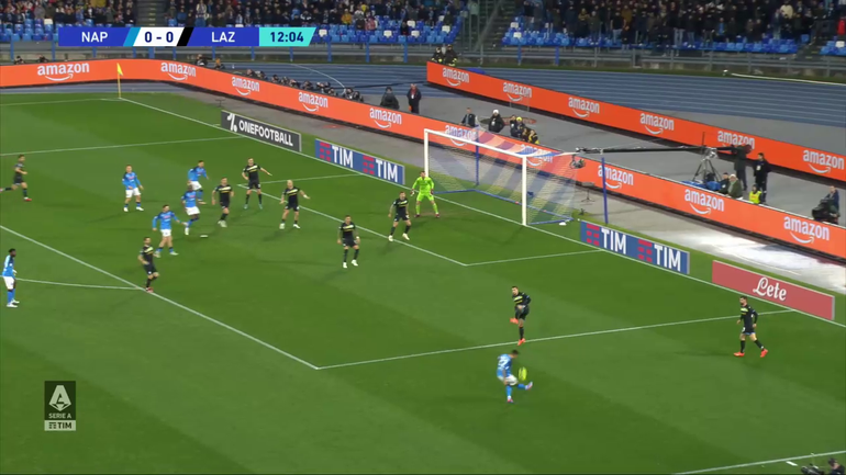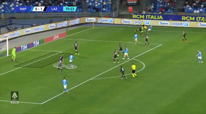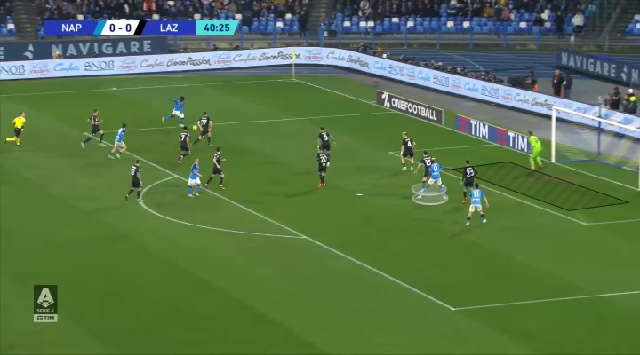 When that failed, however, their positional defending inside the box was excellent. The near-side centre-back positioned himself to cut out the ball across the near post, while the latter maintained access to Osimhen and the deepest midfielder – usually match winner Matias Vecino – remained in a position to intercept a possible ball into feet.