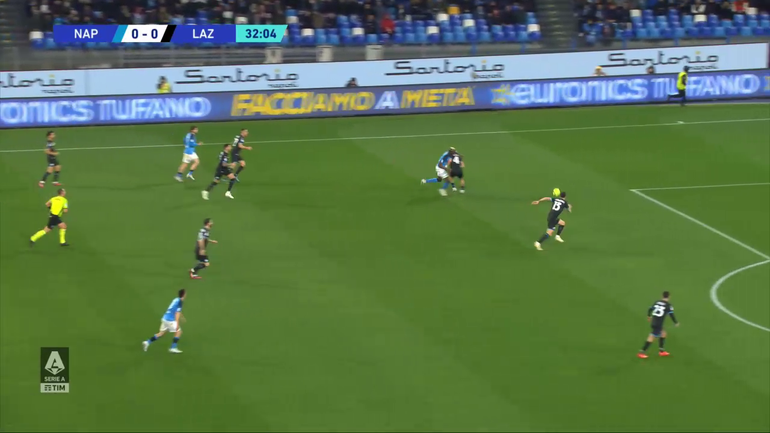 There was a curious scarcity of runs in behind from Osimhen, especially considering Lazio kept a reasonably high line in open play. More often than not, Osimhen showed for the ball to feet, but the sort of arcing runs into the channel that have become something of a trademark were in short supply.