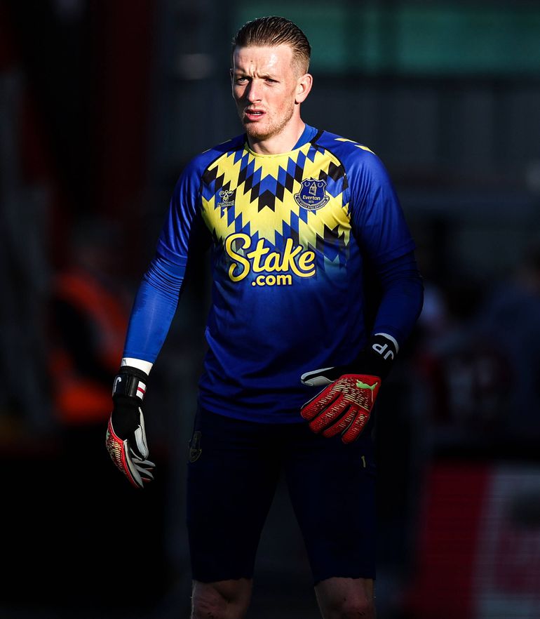 Everton goalkeeper Jordan Pickford warming up during the Premier League match at Vitality Stadium on November 12, 2022.