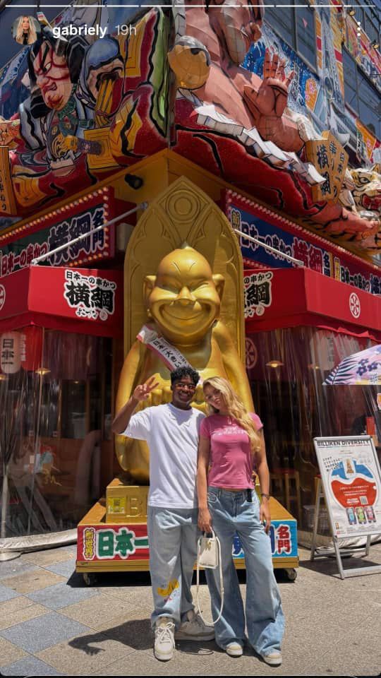 In a separate post, the model showcased the surprise she arranged for Endrick and shared a photo of the newly‑wed couple posing before an iconic statue in Shinsekai, the retro heart of Osaka, Japan.
