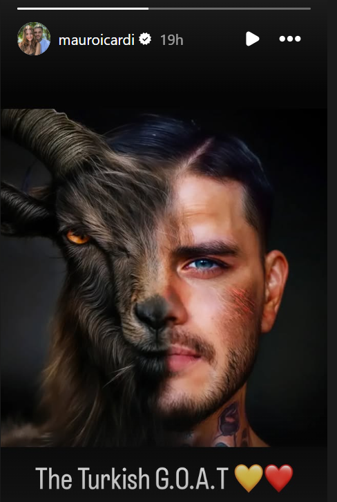 In case the first picture was not explicit in its messaging, Icardi, on another slide, shared a graphically altered image of himself, with half his face that of a goat’s. He captioned it “Turkish GOAT.”