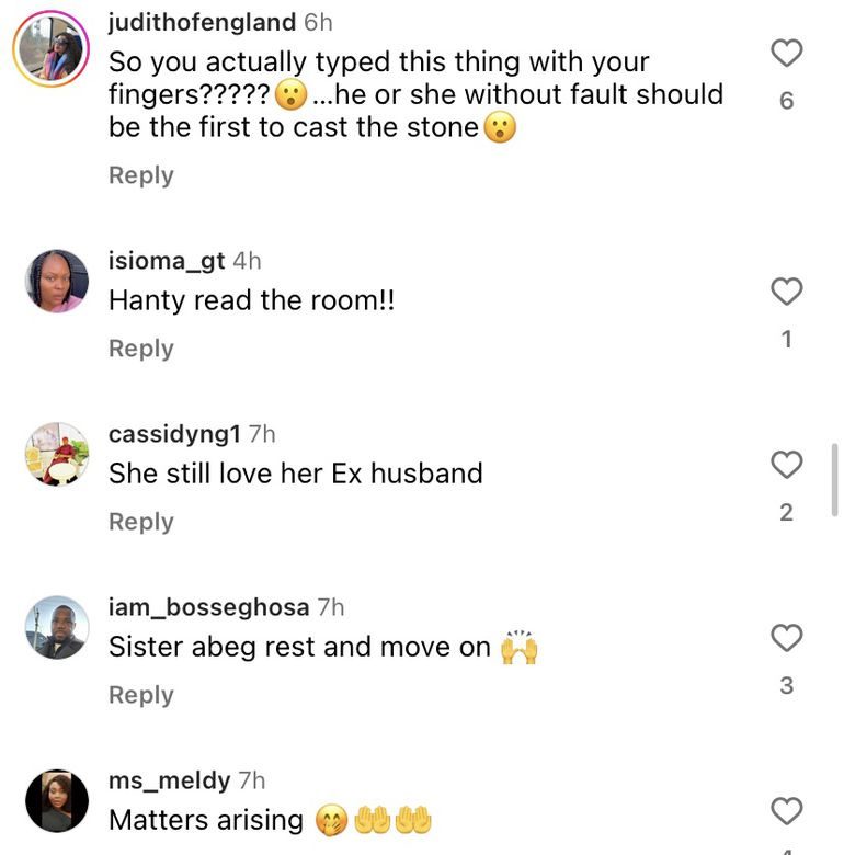 Befor another user wrote: “Everytime your ex-husband!! Wrap that.”