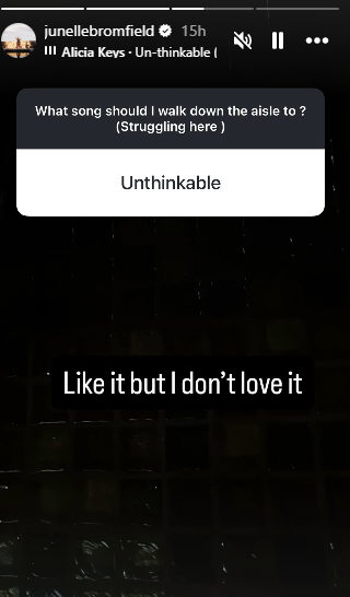 After announcing her grand wedding date to tie the knot with her better half Noah Lyles, Junelle Bromfield has requested fans' help with choice of song to walk down the aisle.