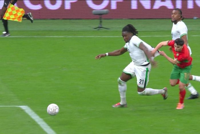That’s a crazy decision, the Morocco player pulled Bassey’s shirt… Ref Ref