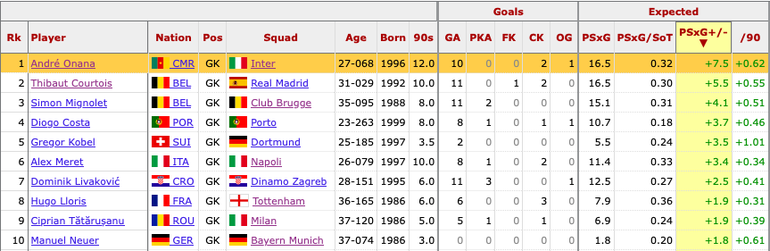Like Courtois, Onana’s shot-stopping before facing Pep Guardiola’s men is first-rate. The Cameroonian has prevented about eight goals going by the quality of shots faced in this year’s competition, and a clean sheet at the Ataturk would be his ninth — matching Edouard Mendy (2020-21), Keylor Navas (2015-16) and Santiago Canizares (2000-01).