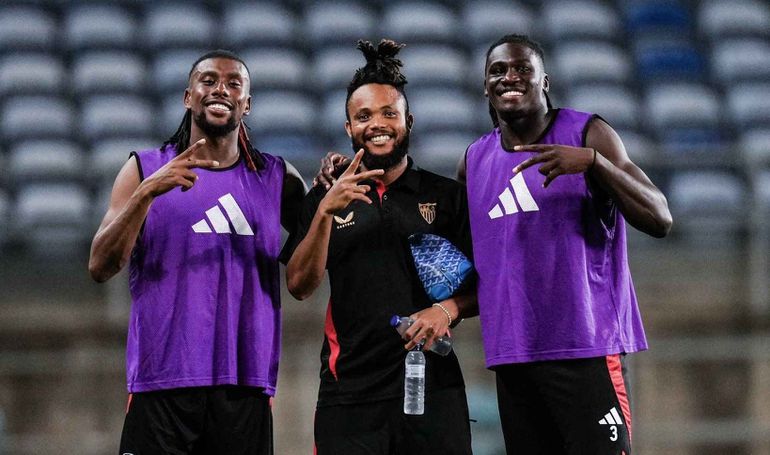 Bassey and Ejuke, who recently joined LaLiga outfit Sevilla, joined Iwobi in the Sevilla dressing room after the match for a celebratory group photograph.