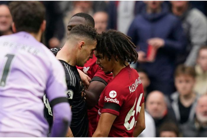 An incident happened in the first half of the game between Granit Xhaka and Alexander Arnold that led to both players being booked by the referee and Jamie Carragher hitting out on Granit Xhaka for making a ridiculous move on the Liverpool left back.