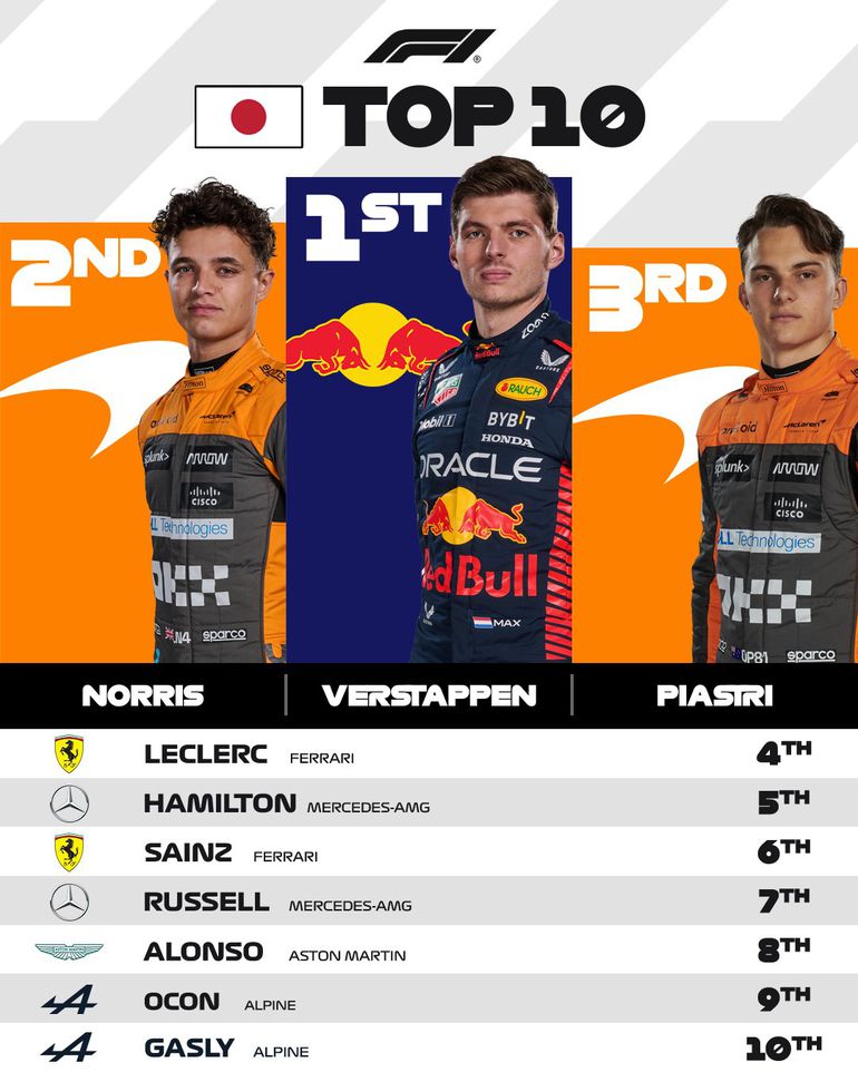 F1 2023 Japanese Grand Prix Full results| Photo Credit: X(@F1)