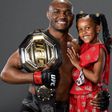 Kamaru Usman celebrates Israel Adesanya's victory with daughter